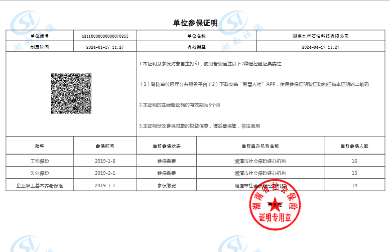 社保繳納證明: