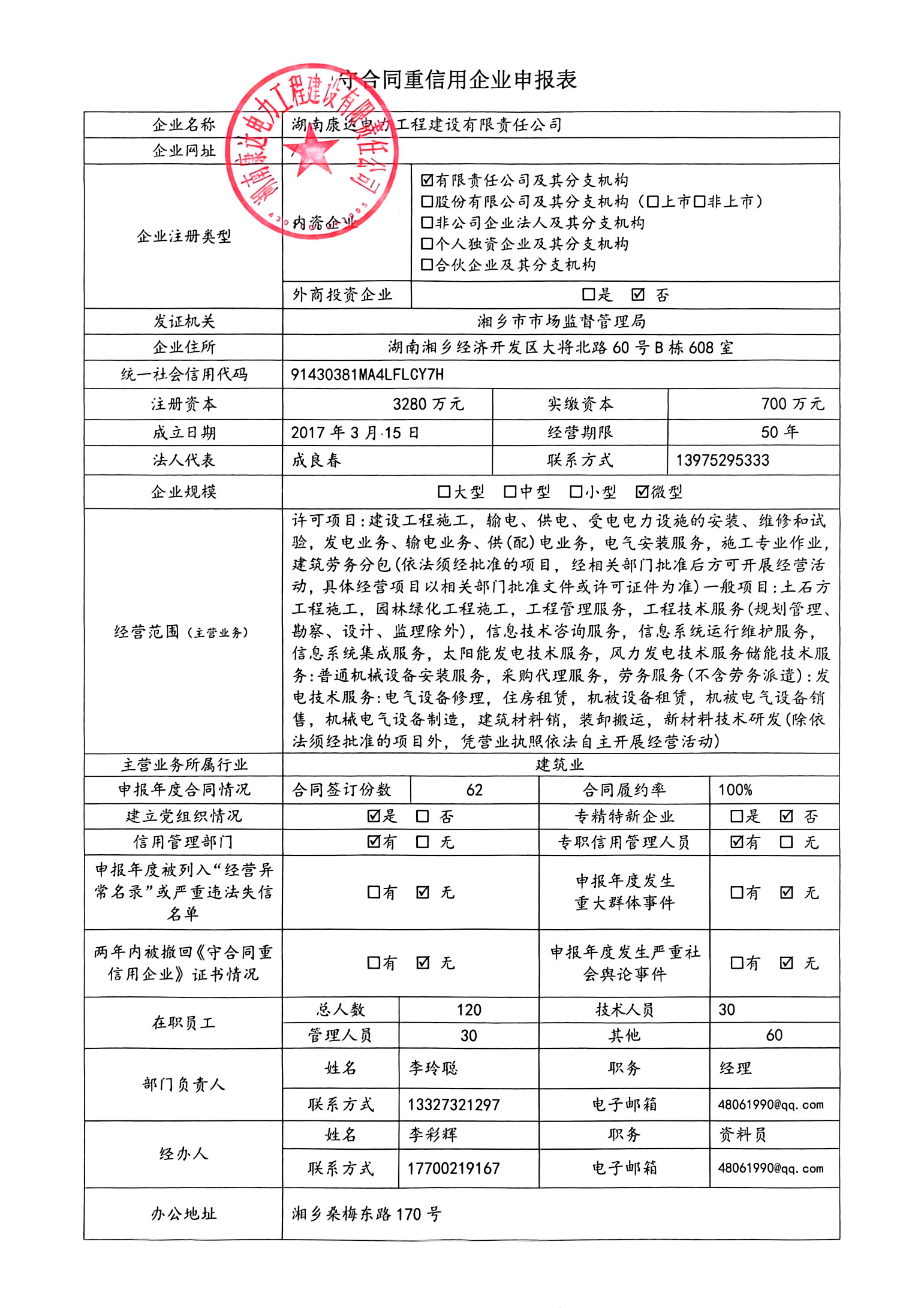 本企業(yè)根據(jù)《湘潭市守合同重信用企業(yè)申報(bào)規(guī)定》等編制 2024 年度企業(yè)信用報(bào)告書,并保證本報(bào)告書內(nèi)容真實(shí)、準(zhǔn)確、完整。