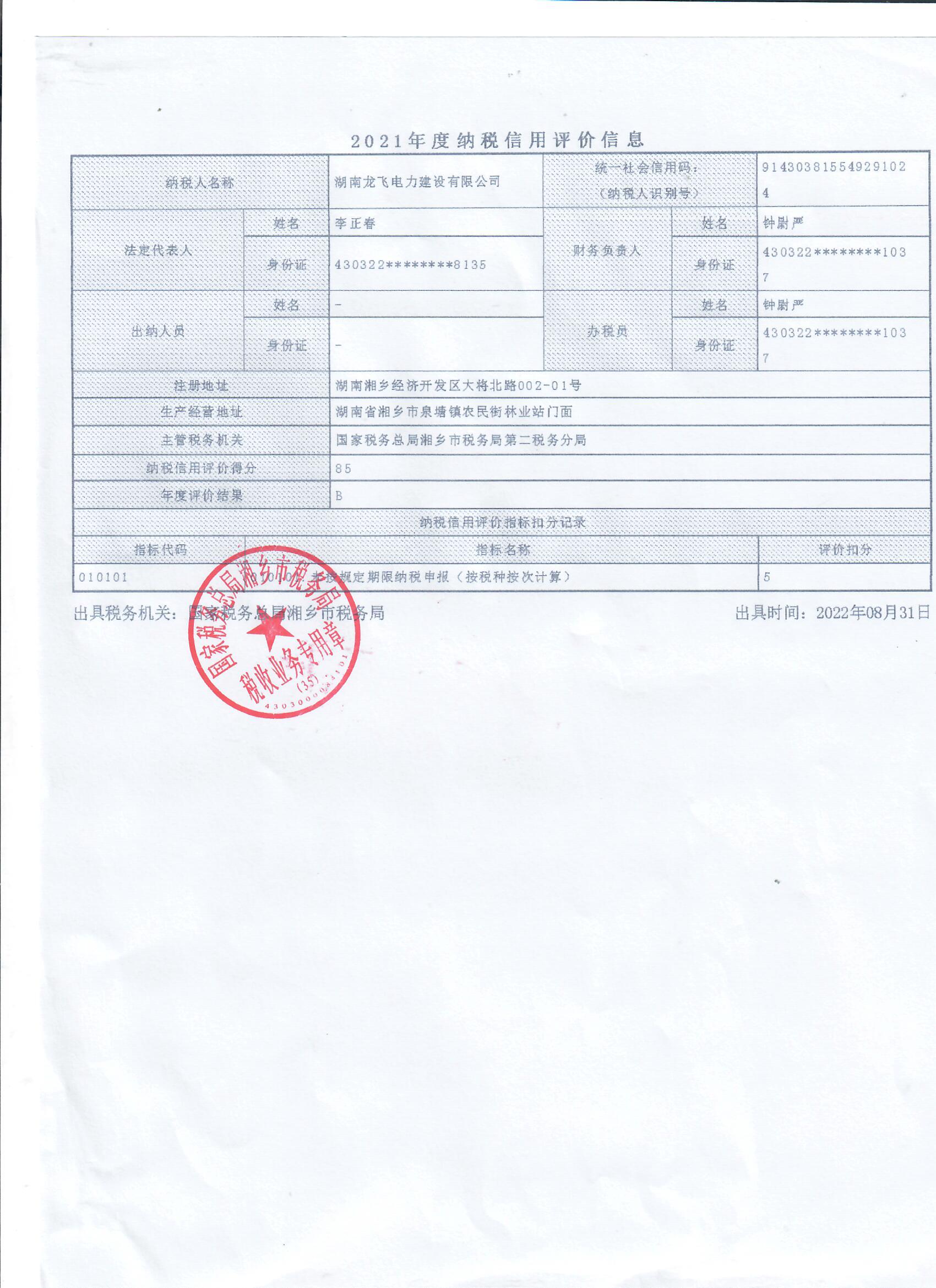 企業(yè)納稅信用等級(jí)報(bào)告: