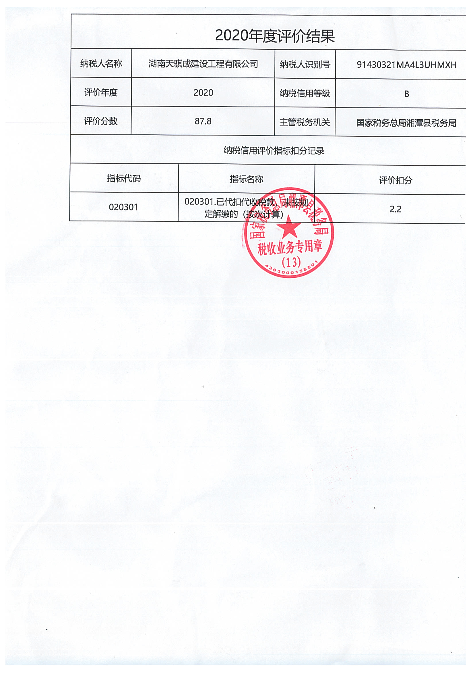 企業(yè)納稅信用等級報告: