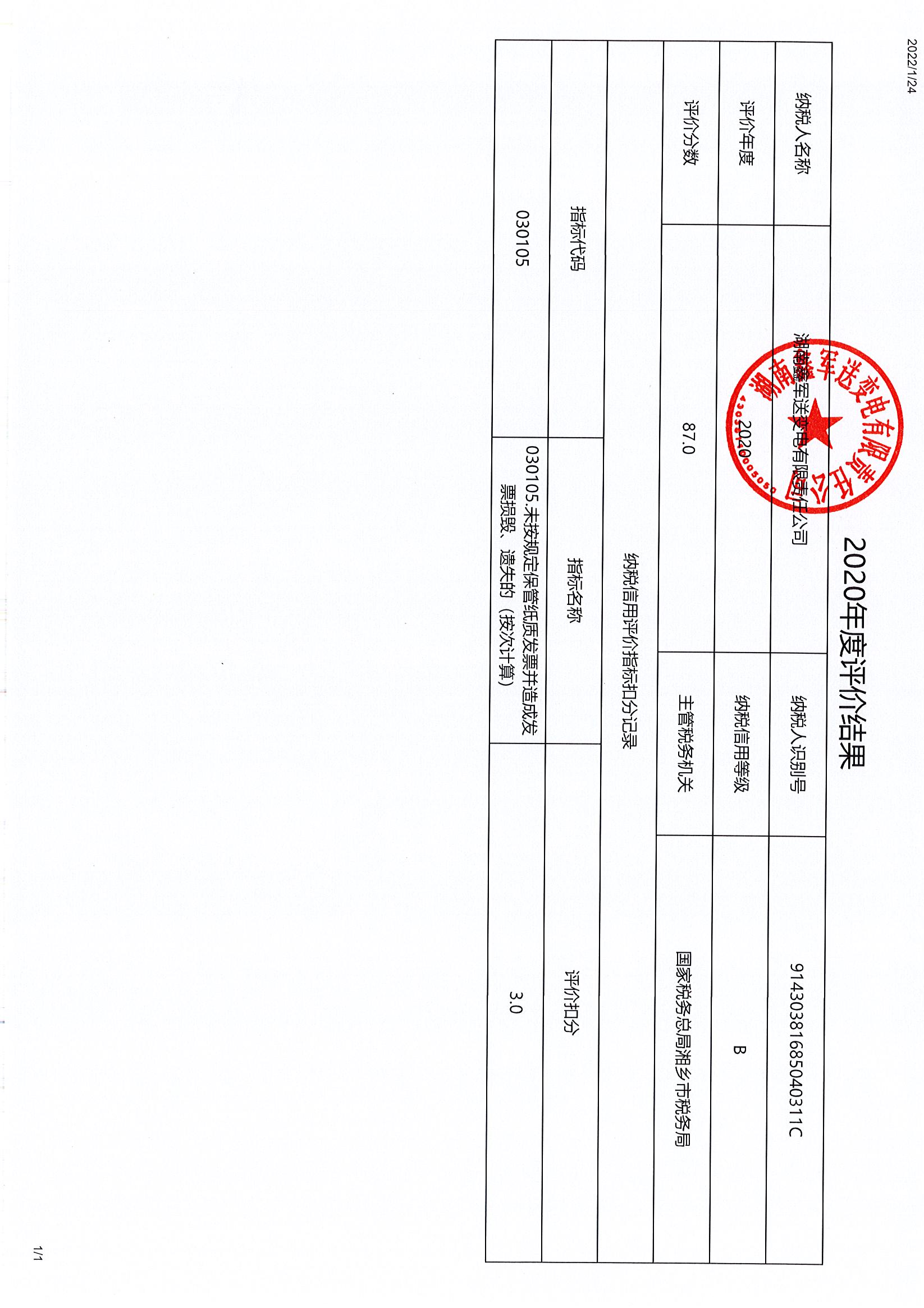 企業(yè)納稅信用等級報(bào)告: