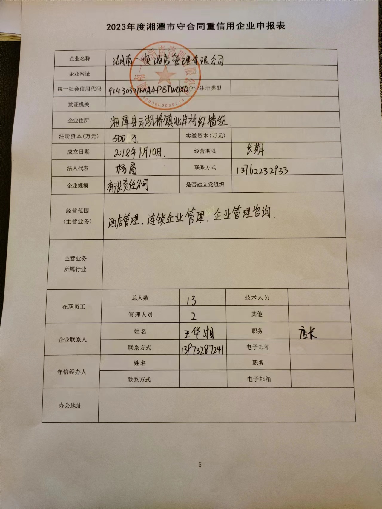 本企業(yè)根據(jù)《湘潭市守合同重信用企業(yè)申報規(guī)定》等編制 2023 年度企業(yè)信用報告書,并保證本報告書內(nèi)容真實、準確、完整。