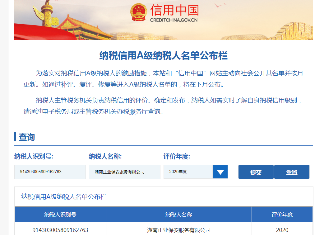 企業(yè)納稅信用等級報告: