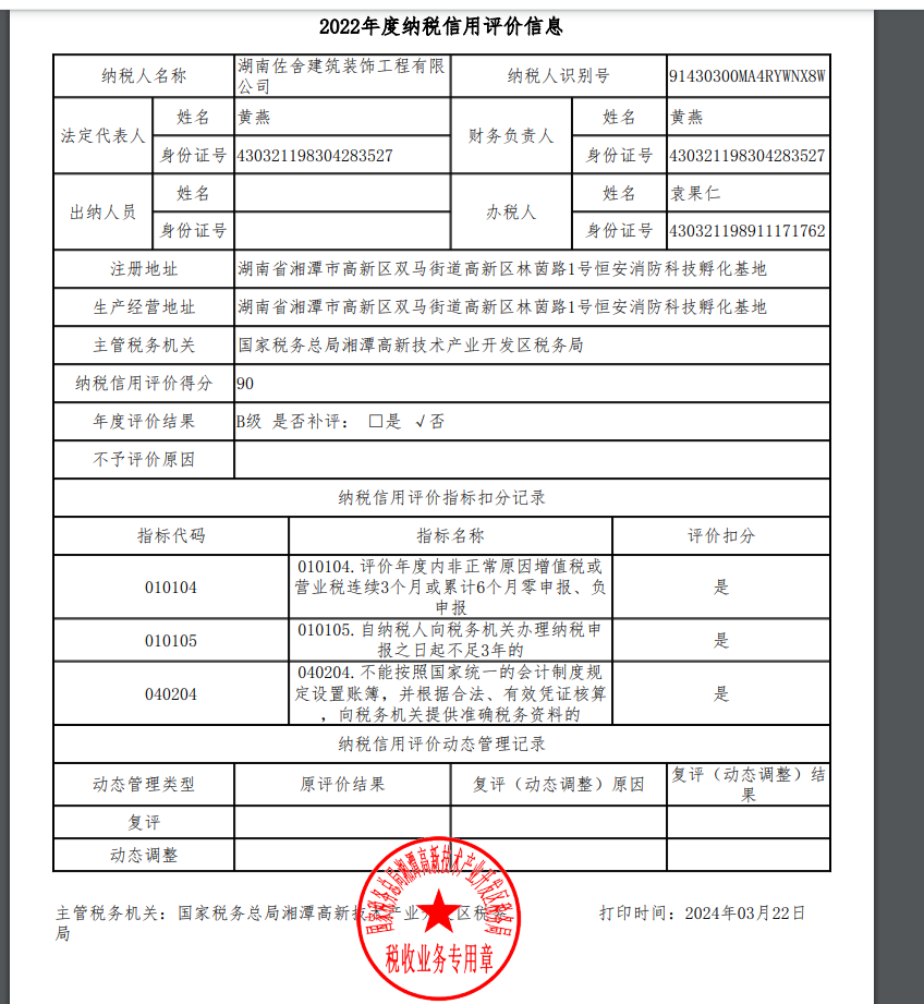 企業(yè)納稅信用等級報告: