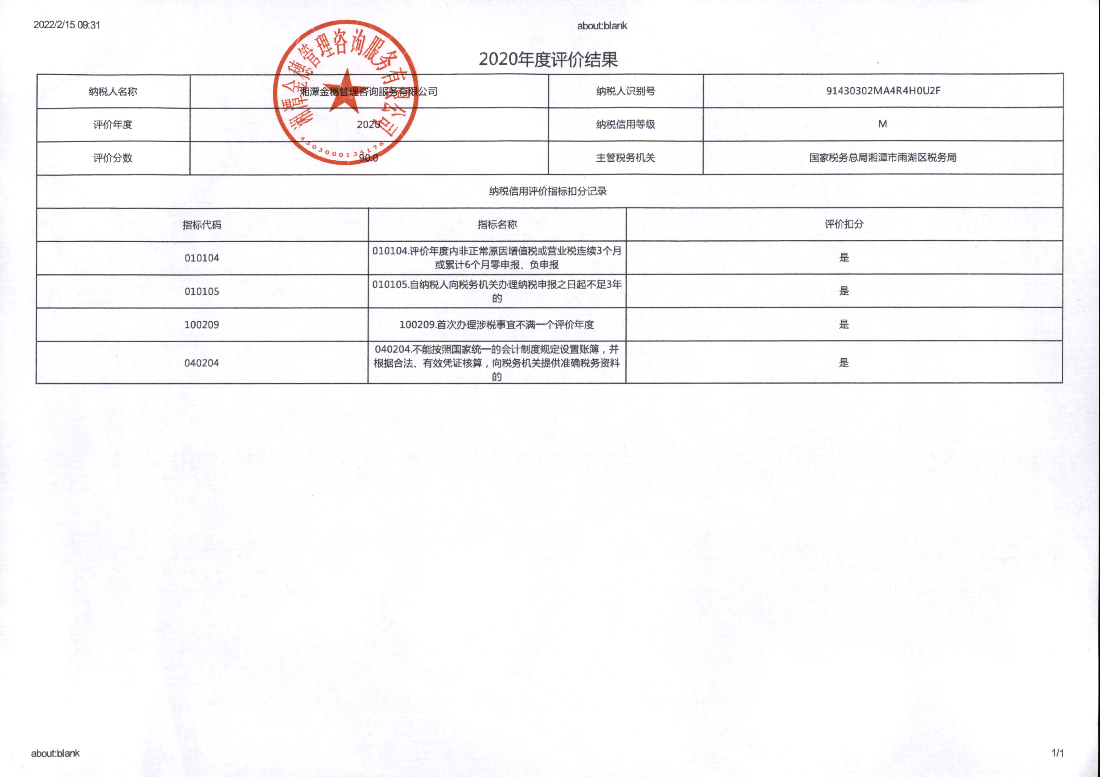 企業(yè)納稅信用等級報告: