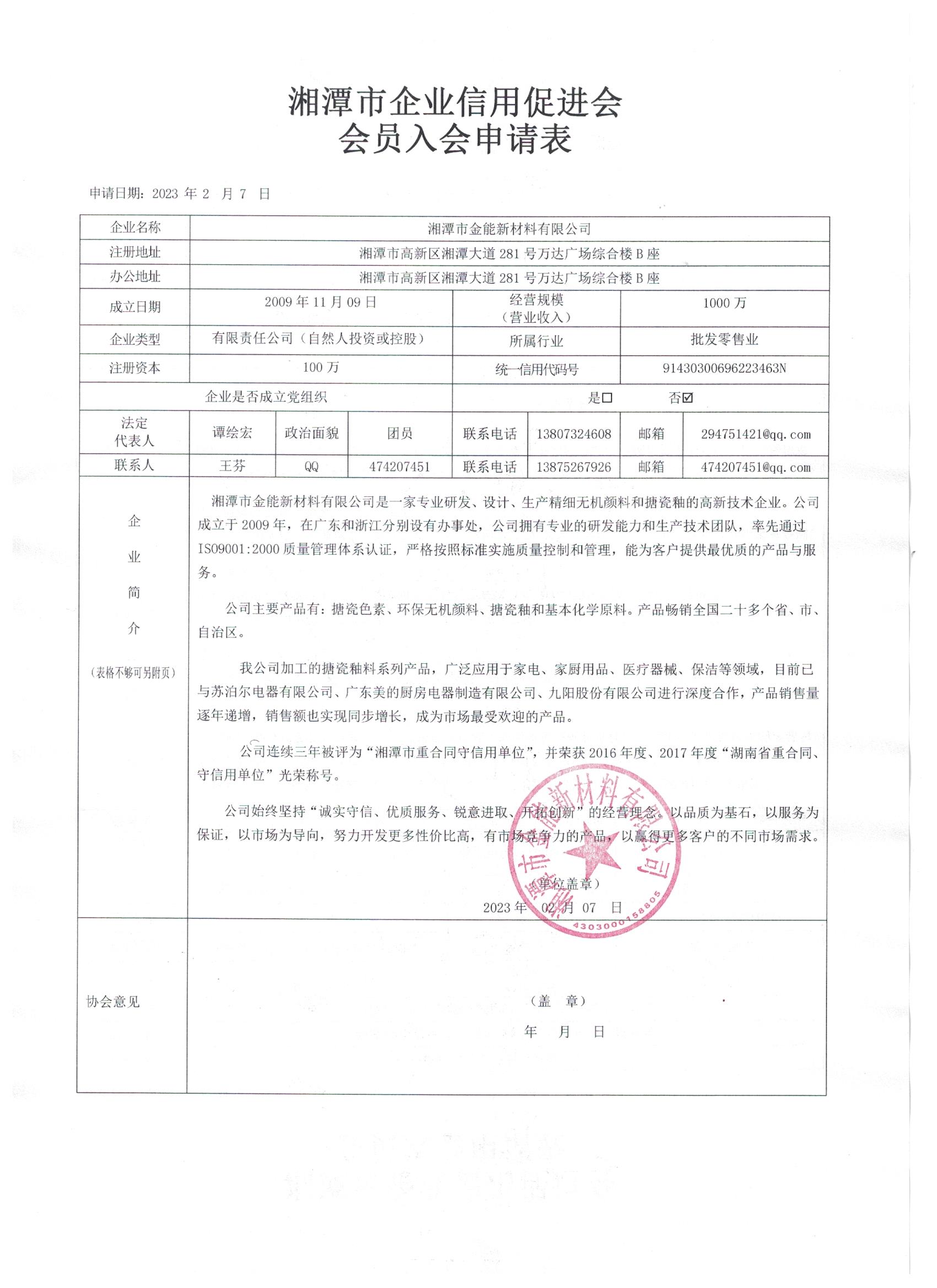 湘潭市金能新材料有限公司2023年度信用報告 2023 已發(fā)布