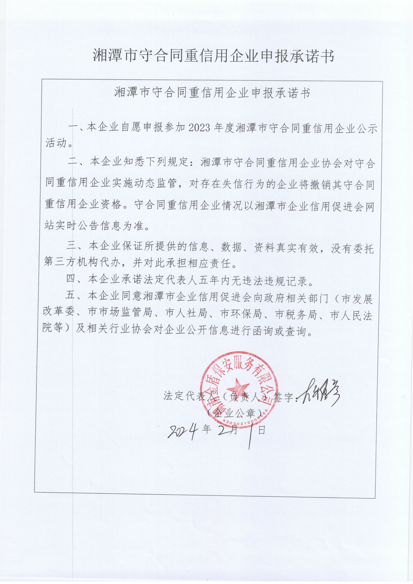 本企業(yè)根據(jù)《湘潭市守合同重信用企業(yè)申報(bào)規(guī)定》等編制 2023 年度企業(yè)信用報(bào)告書,并保證本報(bào)告書內(nèi)容真實(shí)、準(zhǔn)確、完整。